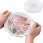 6Pcs Silicone Stretch Lids Cover Reusable Food Seal Wrap for Bowls. Safe to Touch Food Directly and Good For Health. Dishwasher safe .Microwave safe and Freezer safe. Airtight Seal keeps food fresh longer and Prevents Spills.Silicone tops are round yet stretchy enough to fit snugly over odd-shaped mugs. pots. cups & bowls. Very Easy and Handy to Use. One stretchy silicone lid is compatible with many Bowl. Container. Jar.fruits and vegetables.Reusable and Economical. Seeing through clear silicone cover. it is easy for you to find the vegetables or food that you’re looking for. Sbakeware lids without any dyed or painted material. very healthy for baby and adult foods.